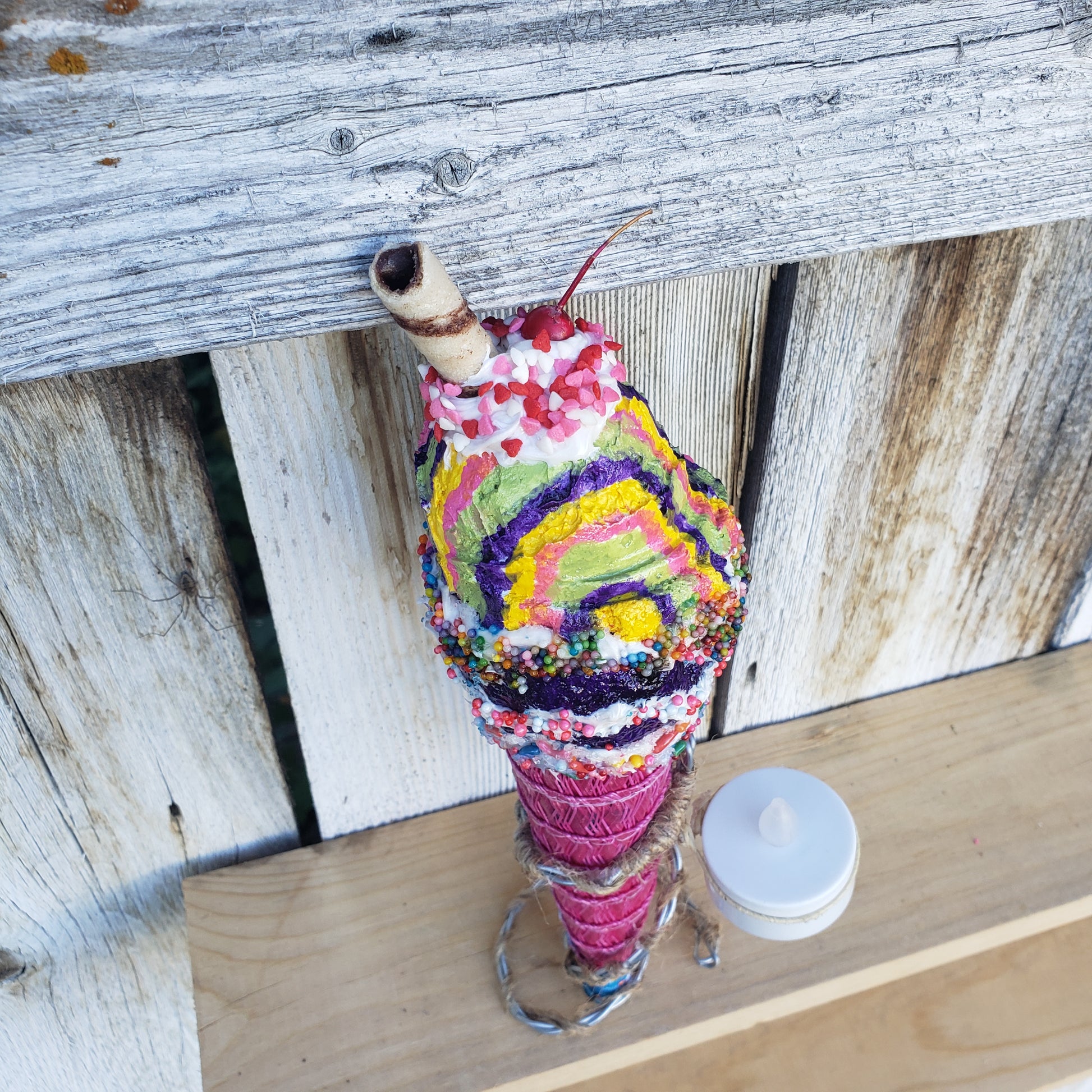 - A new battery operated tea light candle is attached to the stand to both light-up the scrumptiousness and is multi-functional as the cutest night light ever!
